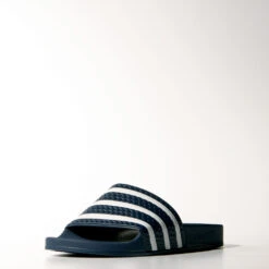 Die dunkelblaue Adilette aus dem Hause adidas Originals wurde im Jahre 1972 eingeführt und hat sich bis heute als starke Bade-Sandale durchgesetzt und ist auch aus dem Streetwear-Bereich nicht mehr wegzudenken.