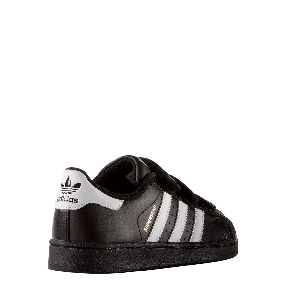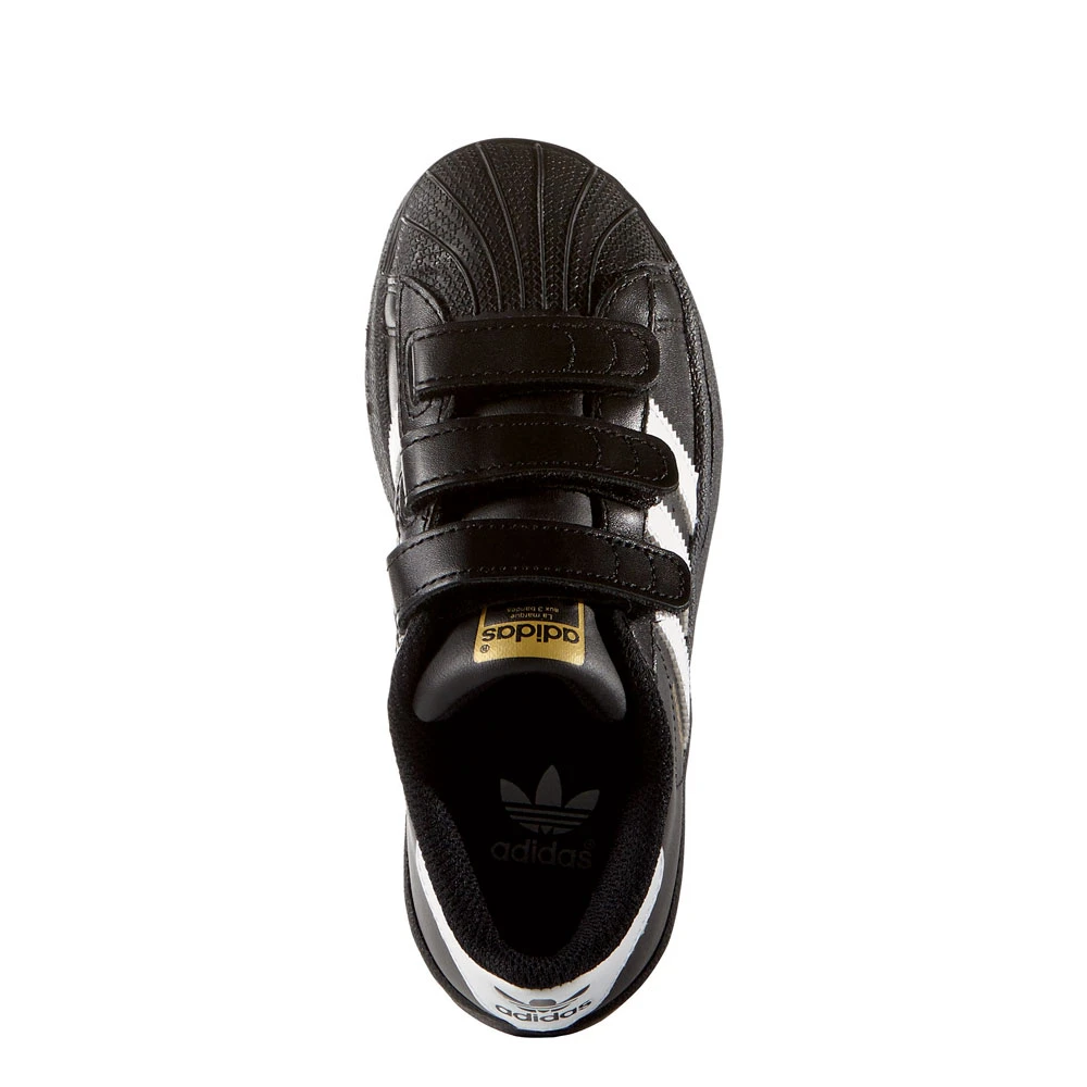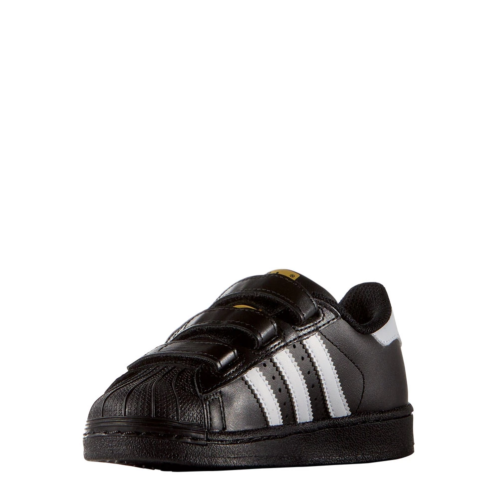 Perfekt für die ersten Schritte im Leben ist der Superstar Turnschuh, weil die Klettverschlüsse den Sitz optimieren und das An- und Ausziehen erleichtern. Des Weiteren ist das Leder-Obermaterial strapazierfähig und robust.