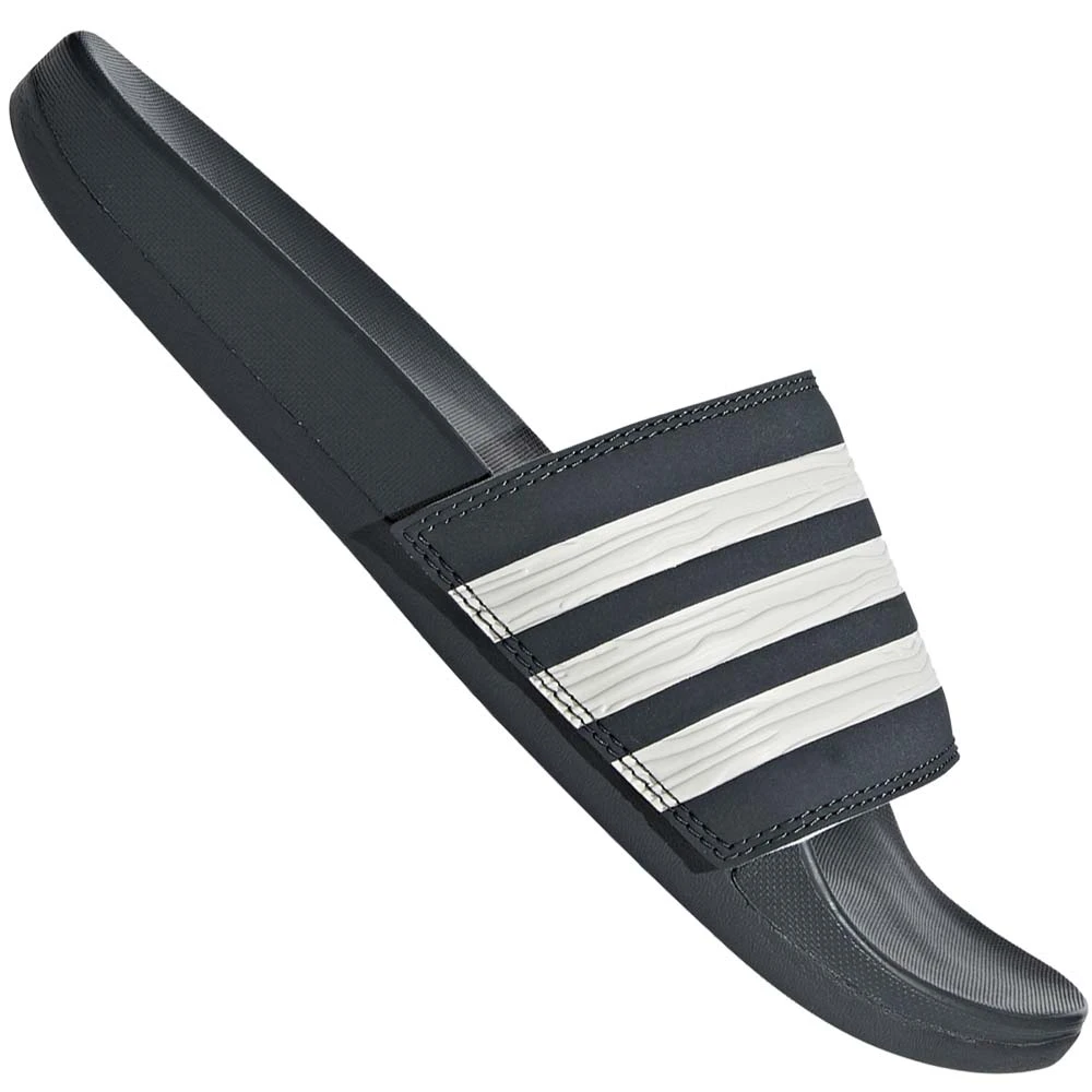 In Anthrazit mit 3 cremeweißen Streifen präsentiert sich die Adilette Comfort mit dem ultraweichen Cloudfoam-Fußbett. Dieses polstert deinen Fuß sanft an empfindlichen Stellen und gibt dir das Gefühl, wie auf Wolken zu laufen. Zudem erfährst du dadurch eine weiche Dämpfung deiner Bewegungen, welche durch die leichtgewichtige Außensohle von Halt gekrönt wird.