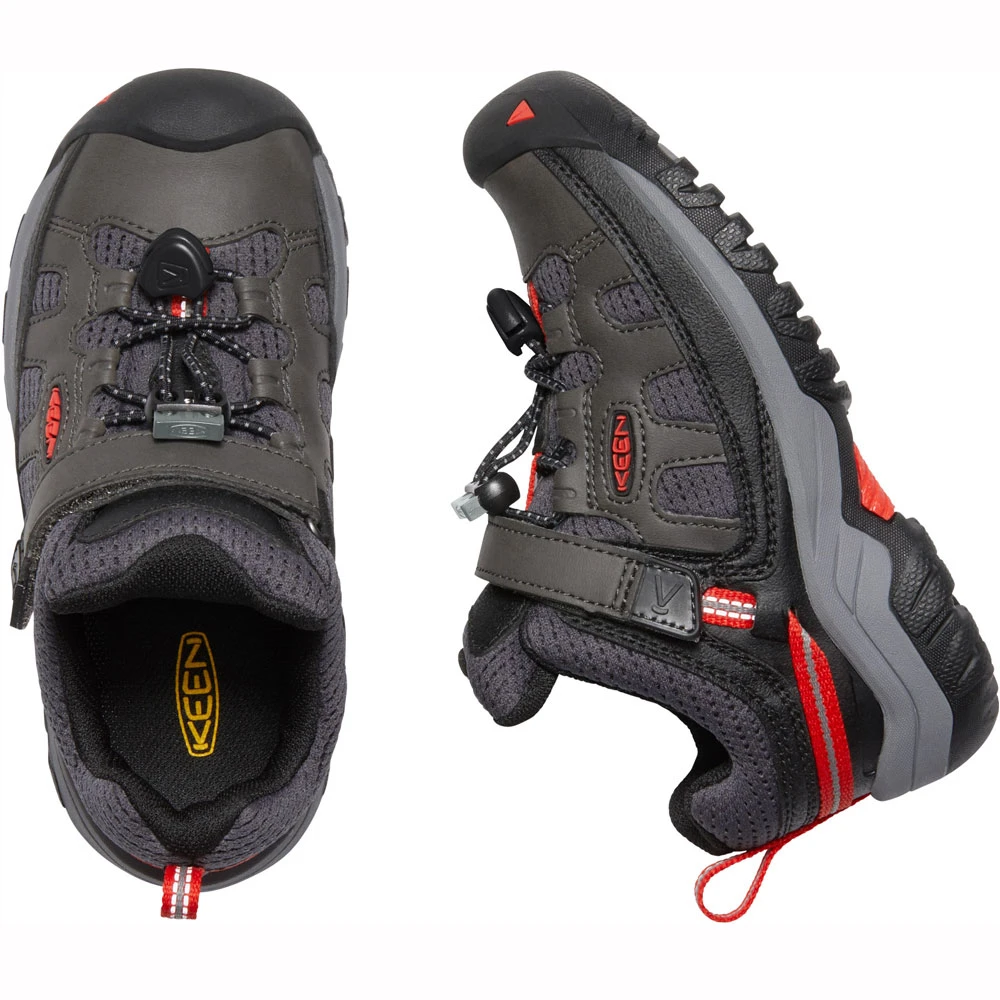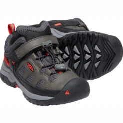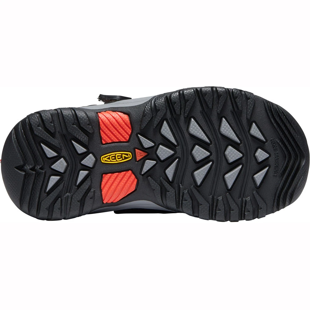 Beim Verschluss wurde auf ein Schnellschnürsystem mit verstellbarem Klettverschluss gesetzt, was grade Kindern sehr entgegen kommt und ihnen gleichzeitig einen sehr guten Halt beschert. Der Ein- und Ausstieg gestaltet sich durch die textile Fersenschlaufe ebenfalls ziemlich einfach. Gegen unangenehme Schweißgerüche wurde das von Keen entwickelte CLEANSPORT verwendet, welches für eine natürliche Geruchskontrolle sorgt und durch ein atmungsaktives Mesh-Futter abgerundet wird. Die abriebfeste Gummisohle sorgt außerdem für den nötigen Grip, egal auf welchem Untergrund.