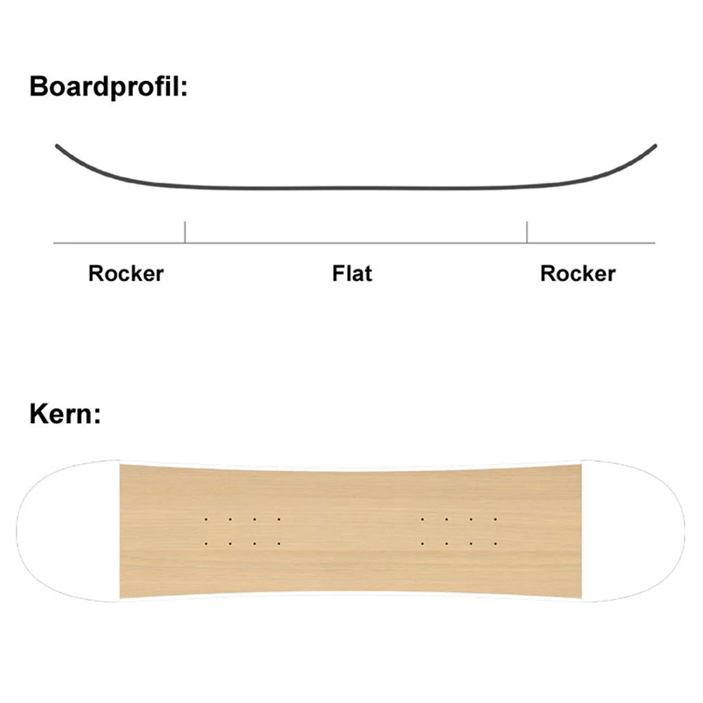 Spaß ist die Hauptsache beim Snowboarden! Aus diesem Grund ist es uns wichtig, ein benutzerfreundliches Kinder-Snowboard mit spielerischen Fahreigenschaften anzubieten. Das Rascal besitzt ein fehlerverzeihendes Flat-Rocker Profil für ein einfaches Handling und einen Twin Shape, der in beide Fahrtrichtungen identisch funktioniert. Der mit biaxialen Glasfaser verstärkte Pappelholzkern steht den Großen in nichts nach und sorgt für ein ausgeglichenes Flexverhalten. Das handgefärbte Ahornholzfurnier kann mit dem beigelegten Stickerset selbstständig verschönert werden. Auf diesem Weg können die Kids ihrer Kreativität freien Lauf lassen und das Snowboard individuell gestalten.