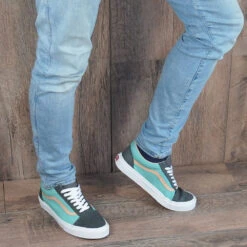 Der Vans Old Skool – ein beliebter Klassiker der nicht aus der Mode gerät. In der aktuellen Kollektion begeistert der zeitlose Sneaker-Schönling durch farbenfrohes Design in der kräftiges Türkisblau, kompatibles Grau-Grün und kotrastreiches Beige aufeinander treffen. Diese Kombination mag ausgesprochen inkompatibel klingen, verbindet sich auf der niedrigen Silhouette der Halbschuhe aber zu einem echten Hingucker um passend dazu den Frühling einzuläuten.